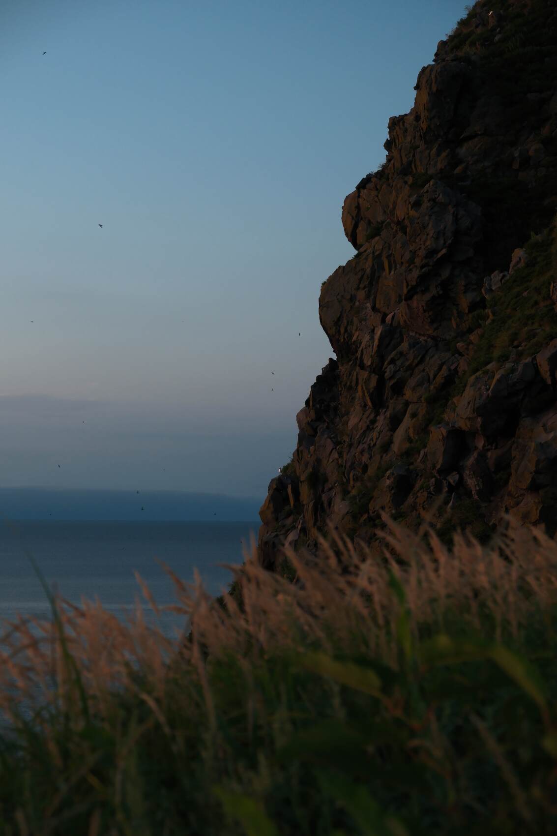 沈みゆく日に照らされ、岸壁もどんどん儚い色をたたえていく。