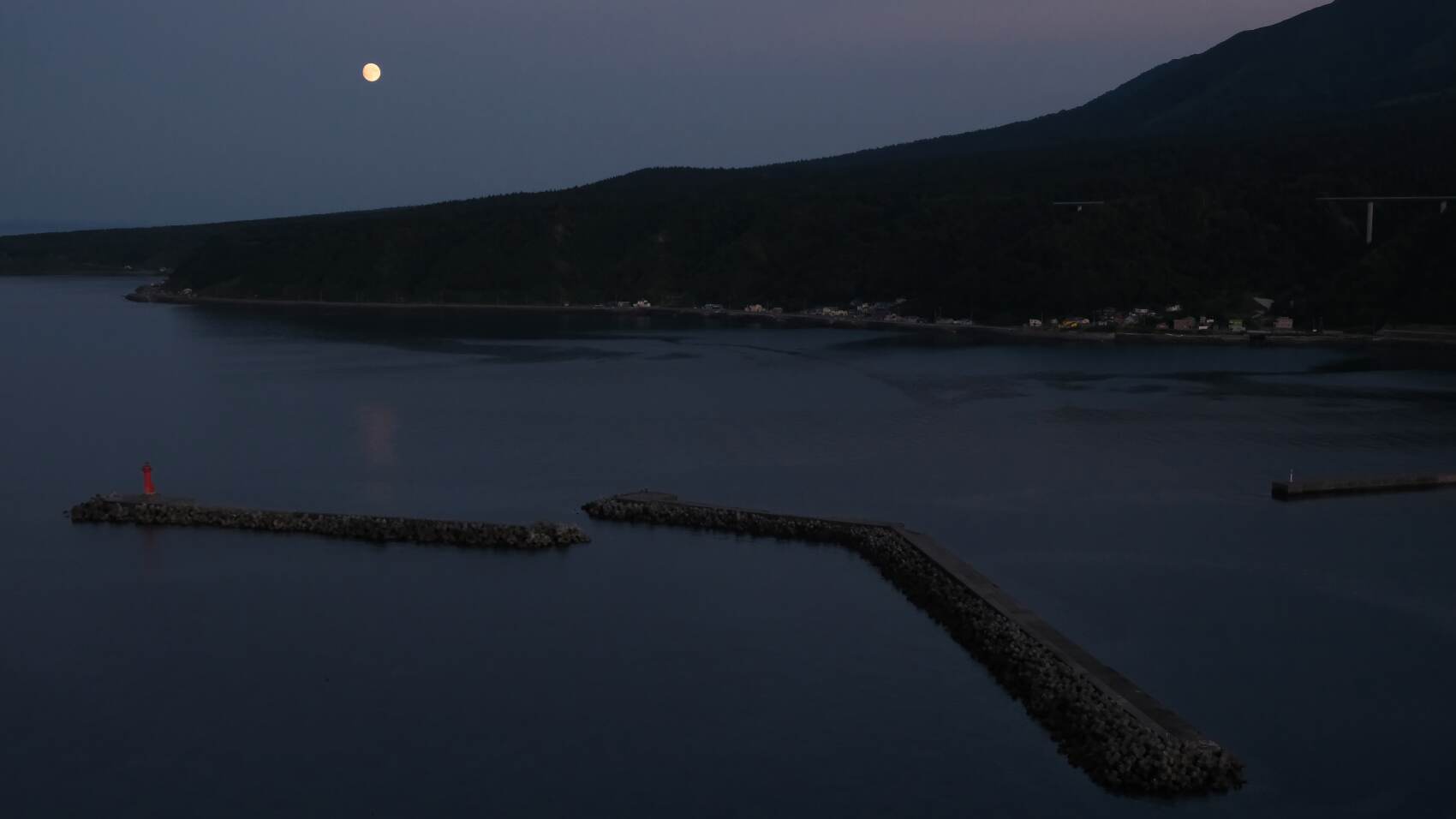 空には月が顔を出し、海との境界が少しずつあいまいになっていく。
