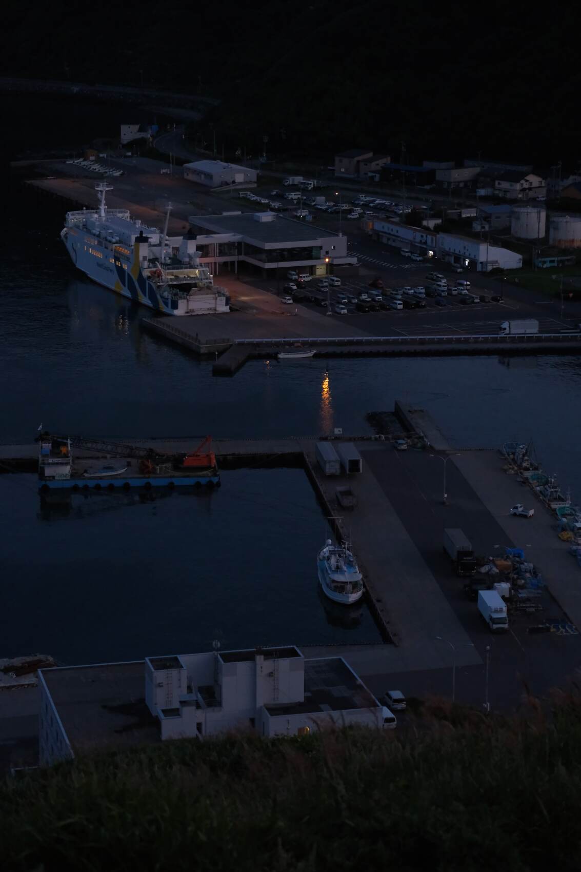 振り返って港の方を望むと、さっき見かけたフェリーが入港するところだった。