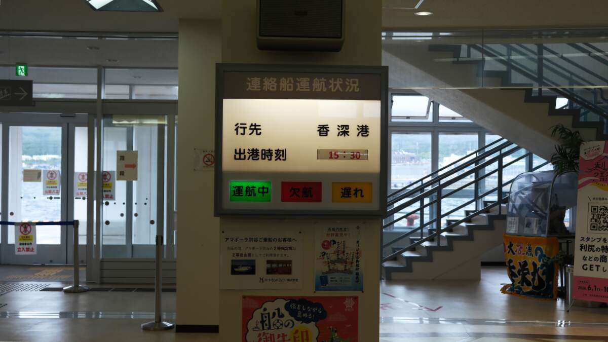 雨が降っているので、沓形のフェリーターミナルへ見学がてら避難。
