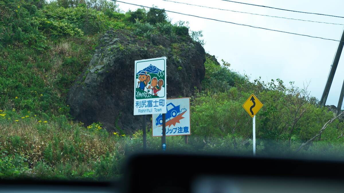 利尻富士町のカントリーサインには、町のマスコットキャラクターであるシマリスのりっぷくん、りっぷちゃんがあしらわれていてかわいい。ちなみに名前は今調べて初めて知った。