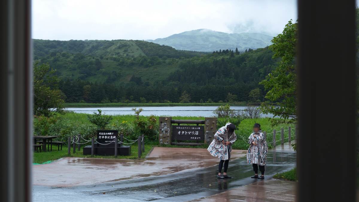 沼の向こうには立派な利尻岳が見えるはずだが、あいにくの天気で顔を隠している。