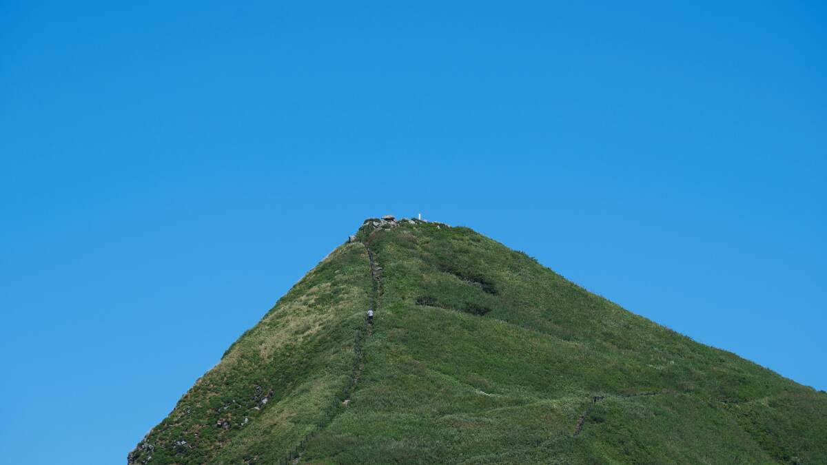 利尻岳と逆方向へ振り返ると、特徴的な緑の岩山が目に飛び込んでくる。