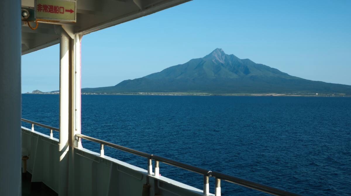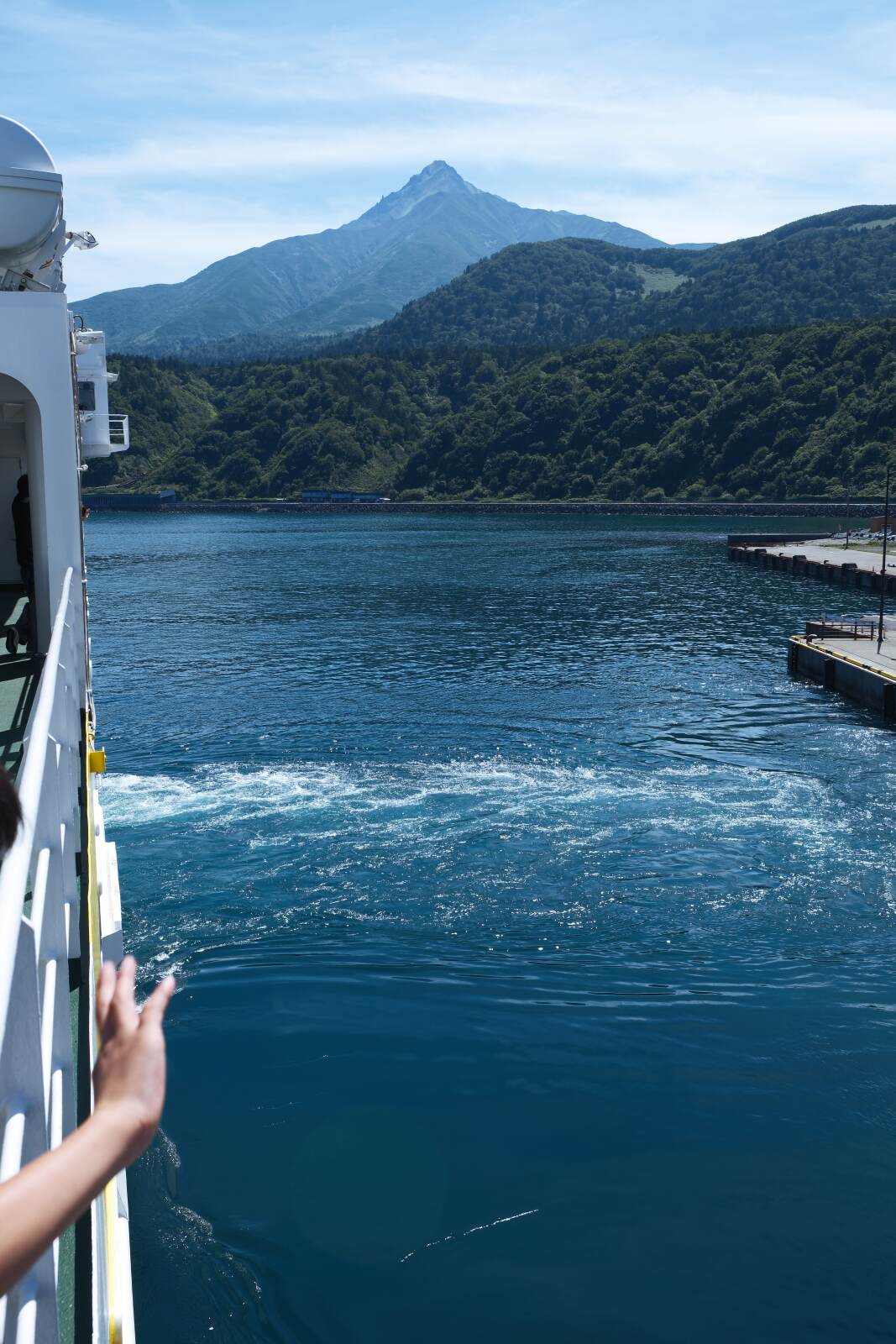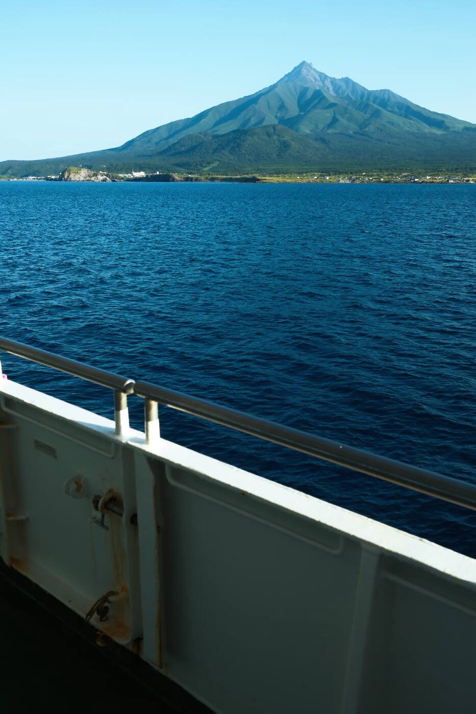 晴れ渡った空に壮大な利尻岳がずしりと構える、この景色は唯一無二の航路だろう。本当に来られてよかった。