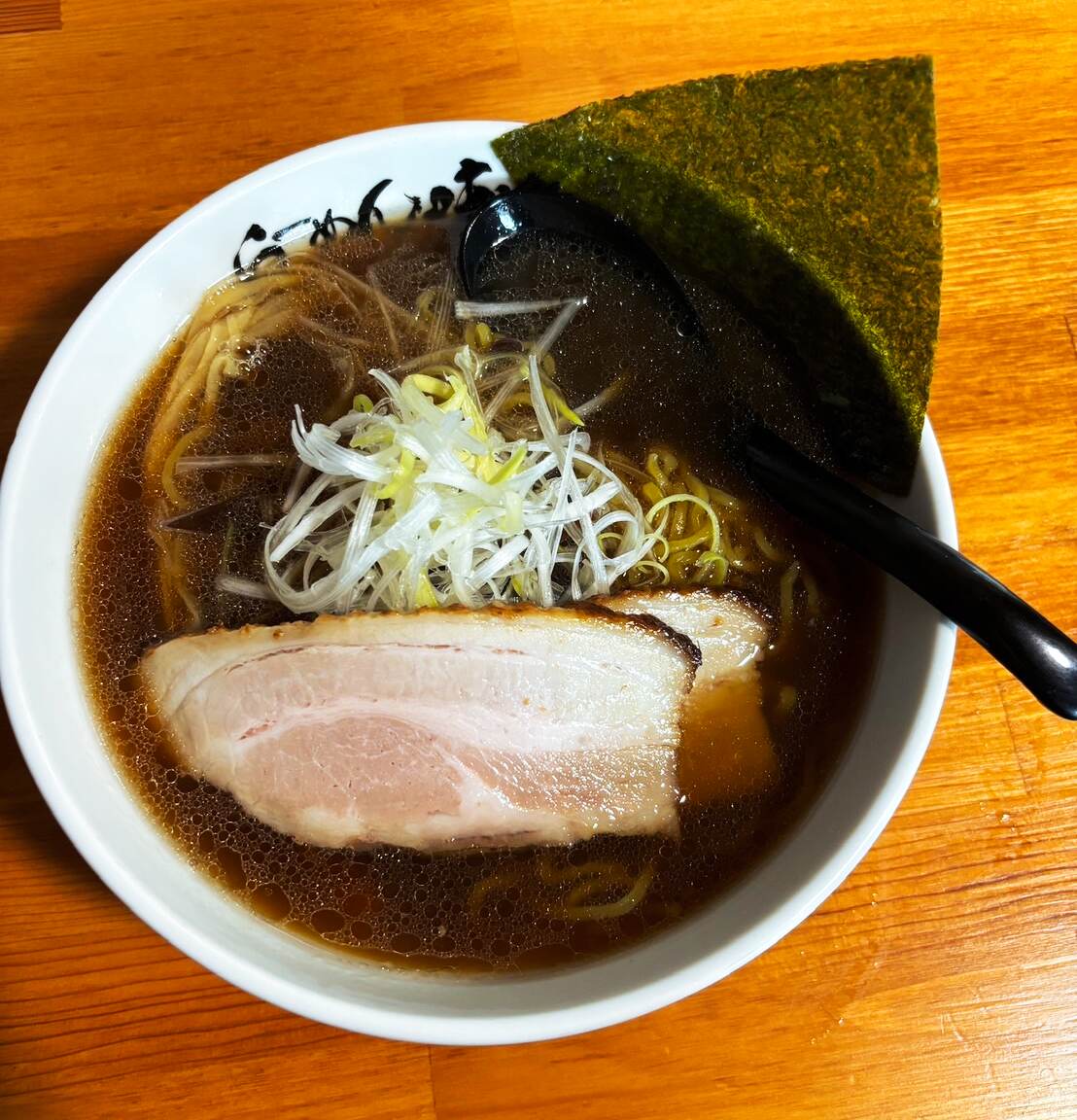 看板メニューである焼き醤油らーめん。